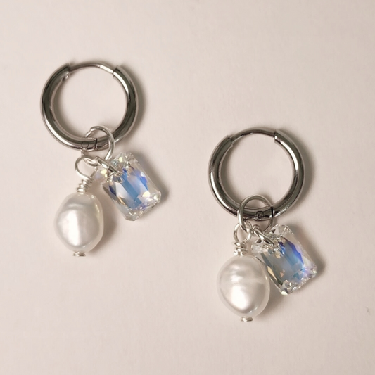 Niña Interior ⟡ Crystal & Pearl Charm Silver HoopsRegular price $32.00 USDRegular priceUnit price / per$42.00 USDSale price $32.00 USDSale