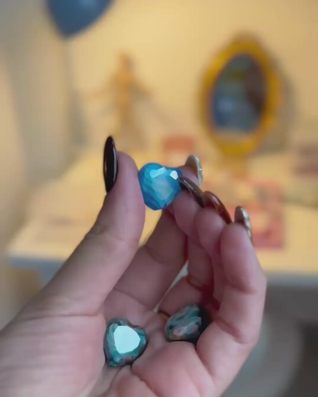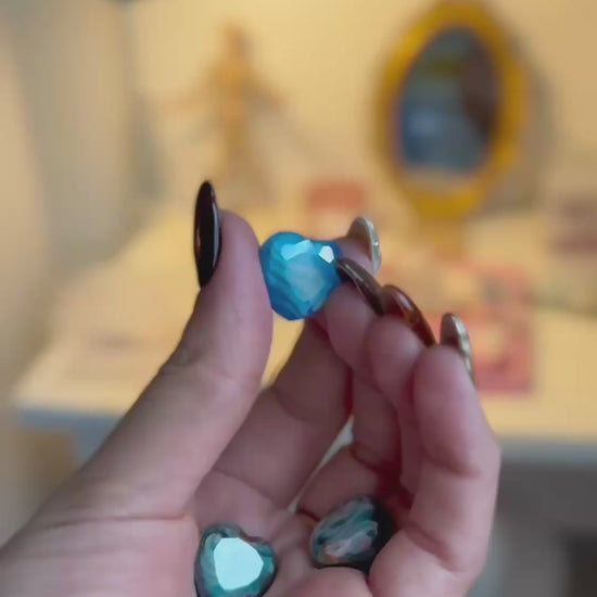 ✨ Four (4) glass hearts in blue and green tones