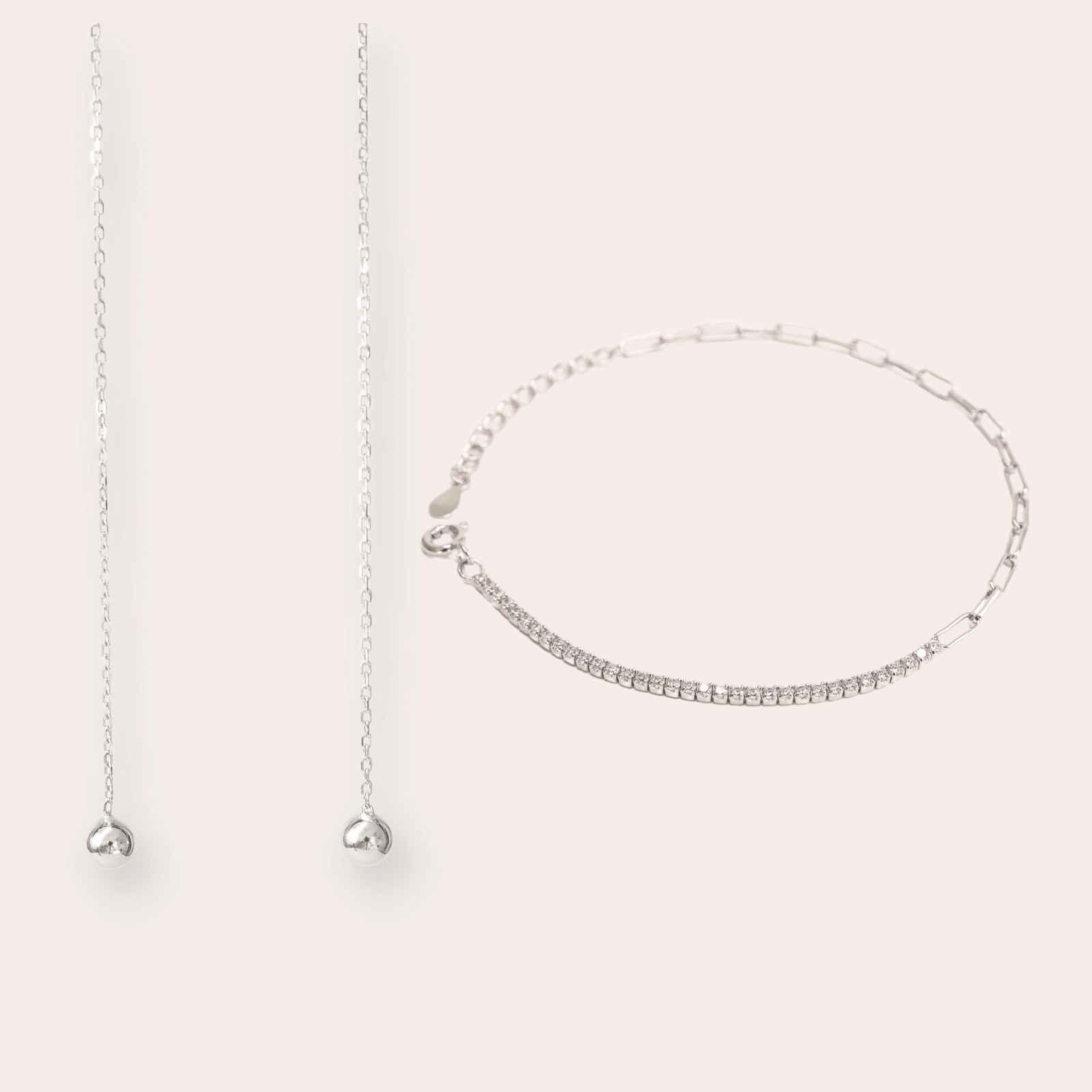 Gift the perfect present with this special gift set, featuring a set of delicate long earrings and a fashionable tennis & chain bracelet with beautiful sparkly rhinestones. Classy and elegant, it's the perfect present for moms, friends, or any special occasion.
