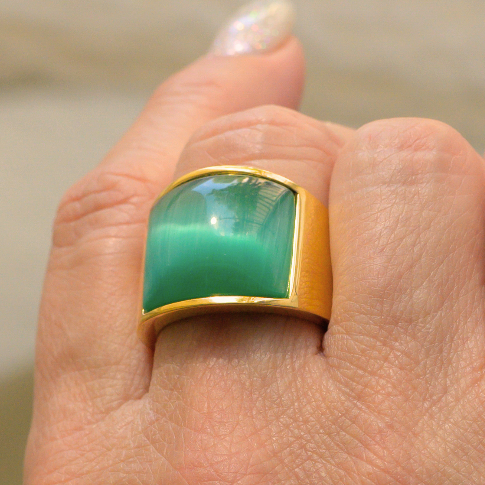 Add Manifiesta (manifest) beautiful green opal statement ring to your collection and instantly upgrade any look. Whether you dress it up or down, this piece will bring a whole new level of style to your wardrobe.