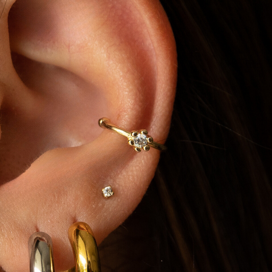 • Huellas ⟡ Pearl Charm Gold Hoops