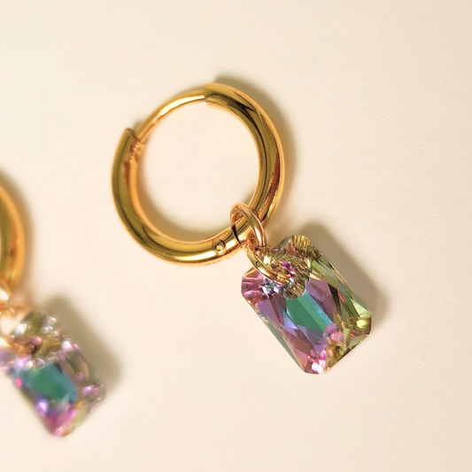 Niña Interior ⟡ Crystal & Pearl Charm Gold Hoops