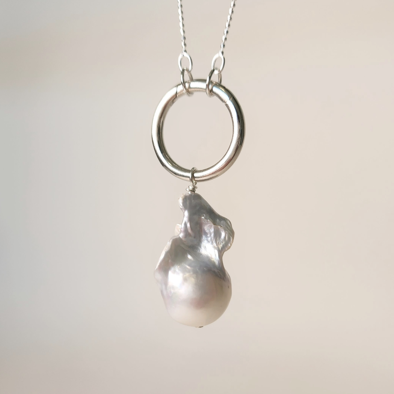 “Fuerte” (strong) necklace is a timeless handmade piece crafted with a stunning baroque freshwater pearl pendant. It's made with high quality Sterling Silver chain and closures. It's unique circular closure in the front is also the pendant holder which you can style with any number of charms you desire. You also have the option to remove the pendant and use the chain by itself. Create a look that's all your own— bold, elegant, or a little bit of both!
